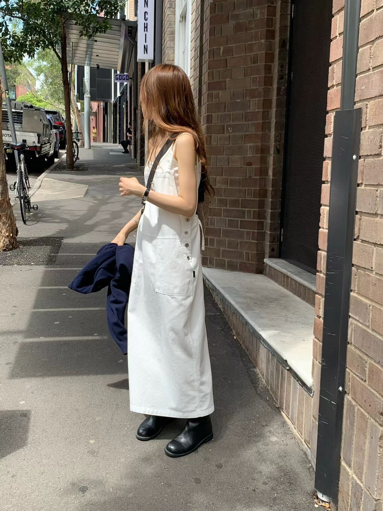 free:着丈 103 身幅 40 (肩紐で着丈調節可能)